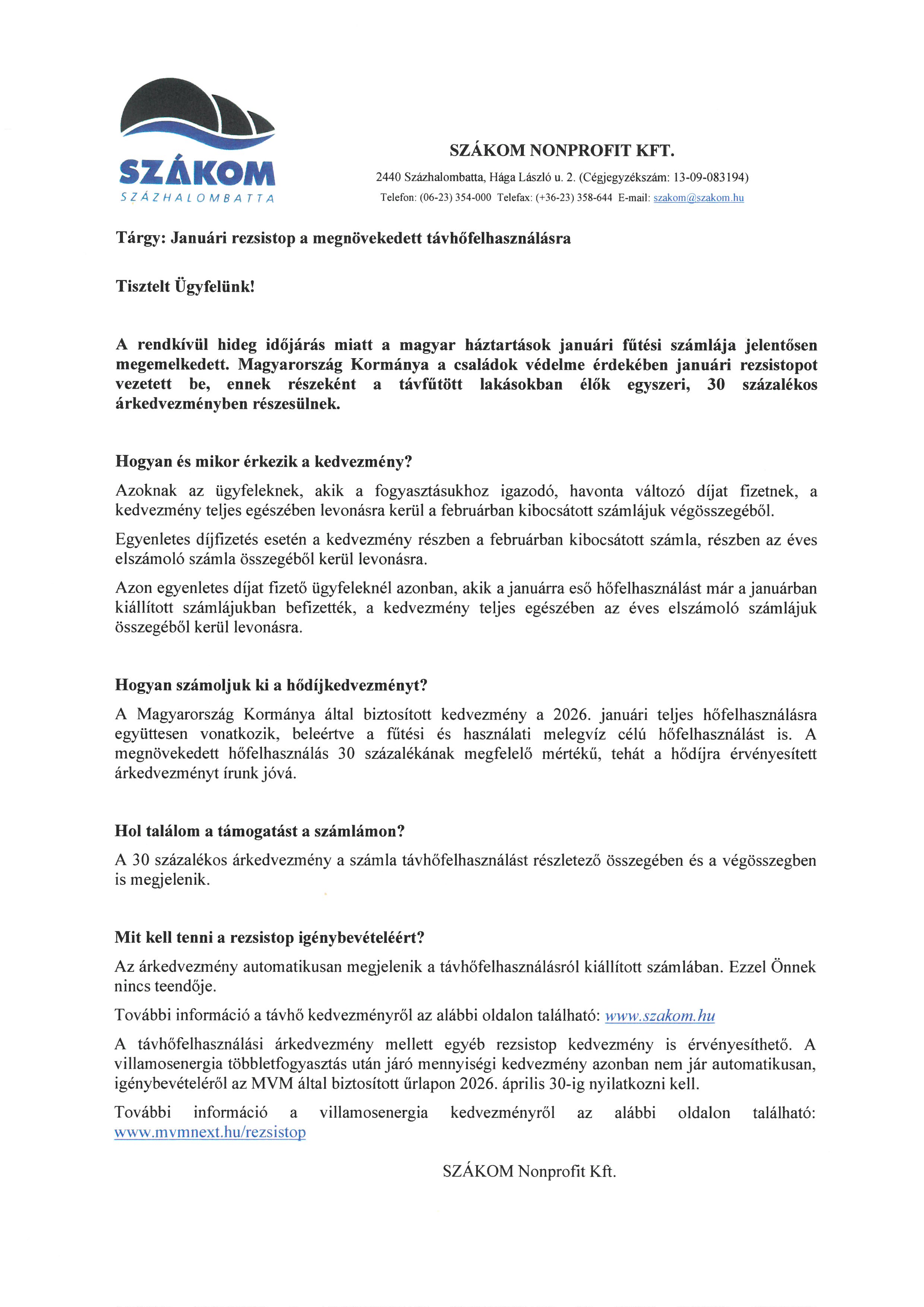 / Lakossági tájékoztató a rezsistoppal kapcsolatban
